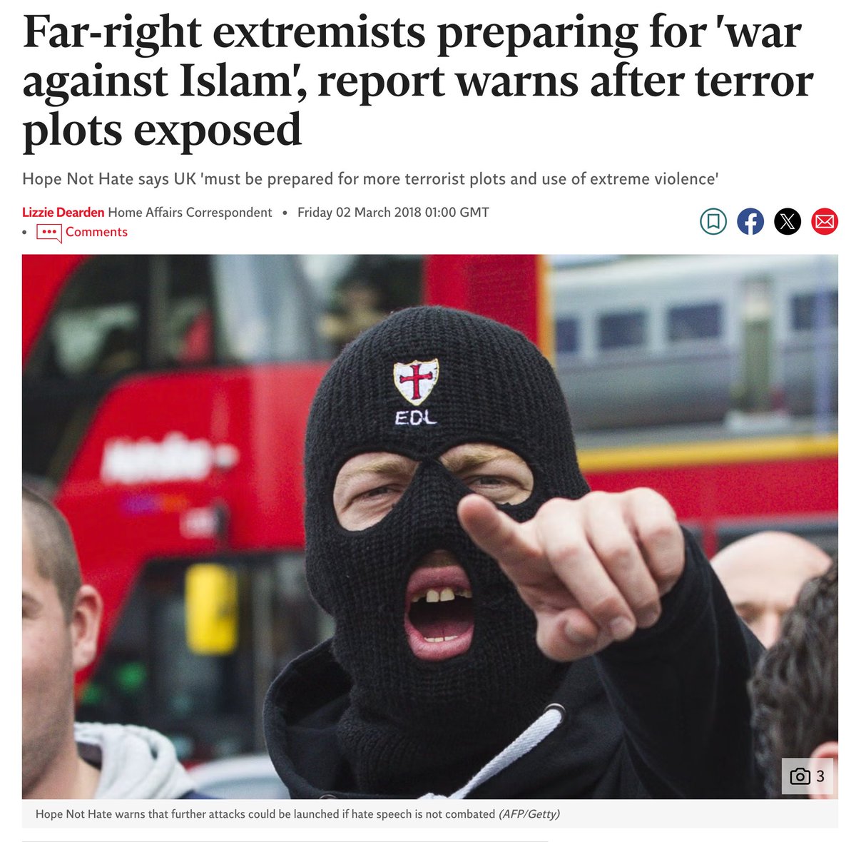 A video: men painting St. George’s crosses on a wall. A Muslim mother and child walk past. One of them shouts, “rag head.”