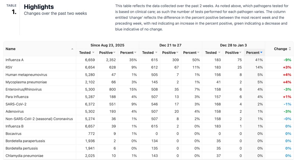 Test positivity for #influenza A hit 50% and now down to 41%. However schools & childcare centres have reopened...