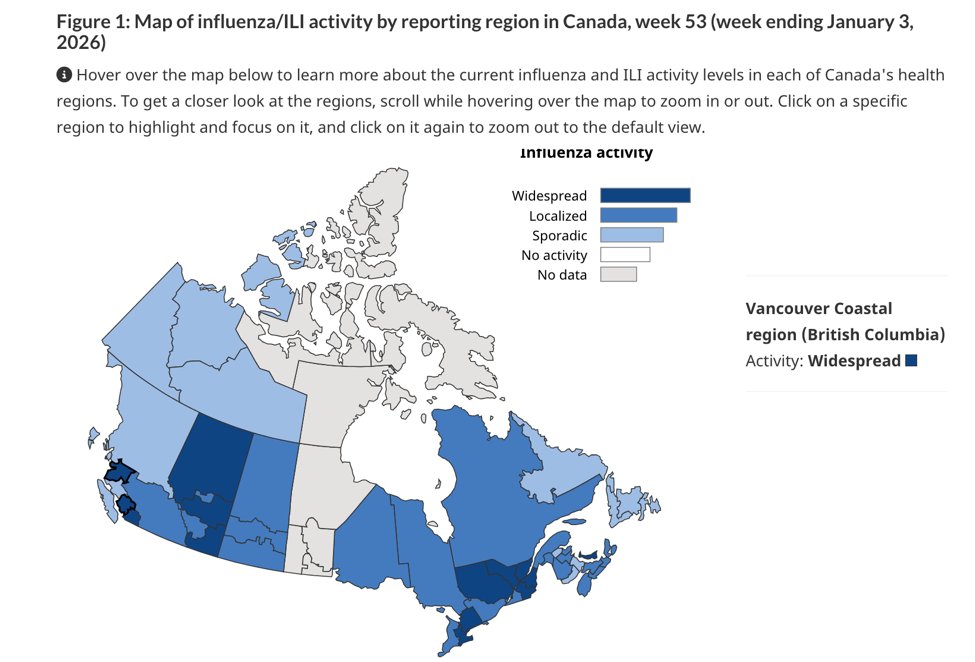 In BC, both Fraser Health and Vancouver Coastal regions have widespread #influenza activity.