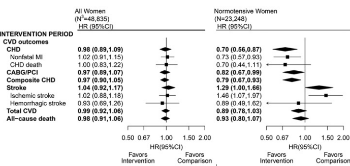 Those with normal blood pressure had no statistical difference in mortality - they did however record a reduced risk of non fat heart attack on the low fat diet. This was offset by increased risk of stroke, which MAY more adversely impact on quality of life.