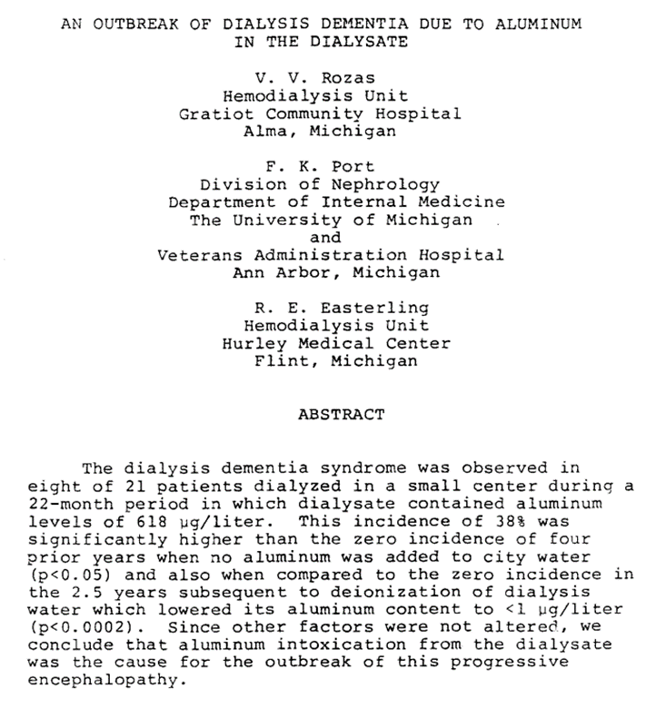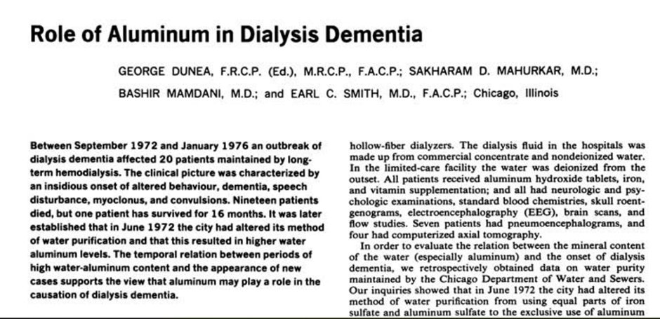 A 1976 study with found dialysis patients who died with dementia symptoms had brain aluminium levels 10x's greater than controls.