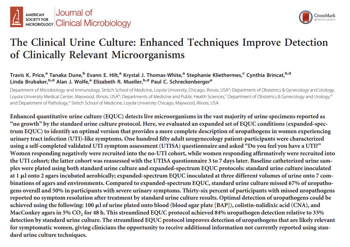Furthermore, even identified pathogens are commonly discounted if the bacterial count is <100,000 bugs per millilitre, which might simply happen if you are well hydrated (or the bugs are very effective at clinging to the wall of the bladder - which many are).