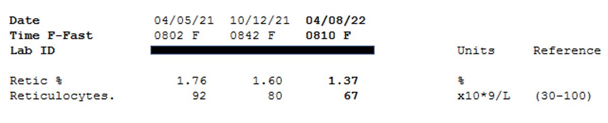Reticulocytes are 'new' red blood cells. When RBC numbers are stable, few new red blood cells demonstrates a longer lifespan.