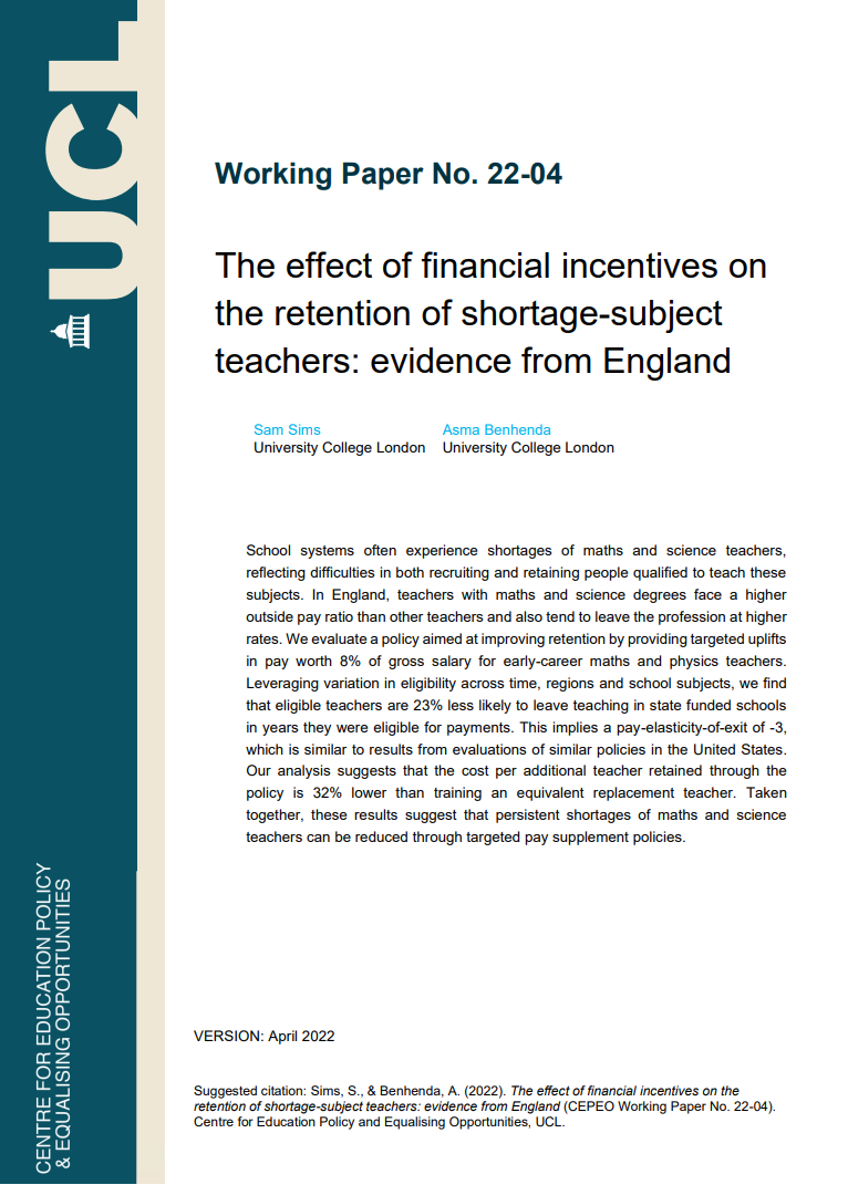 So govt has been experimenting with financial incentives to address the problem. Indeed teachers in some subjects/cohorts qualify for £29k in extra pay over 4 years!