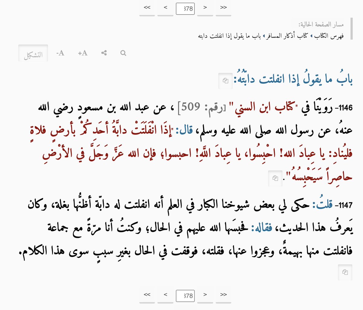 Nawawi: I was with a group once when animal ran away, so I said it, and it stopped immediately.