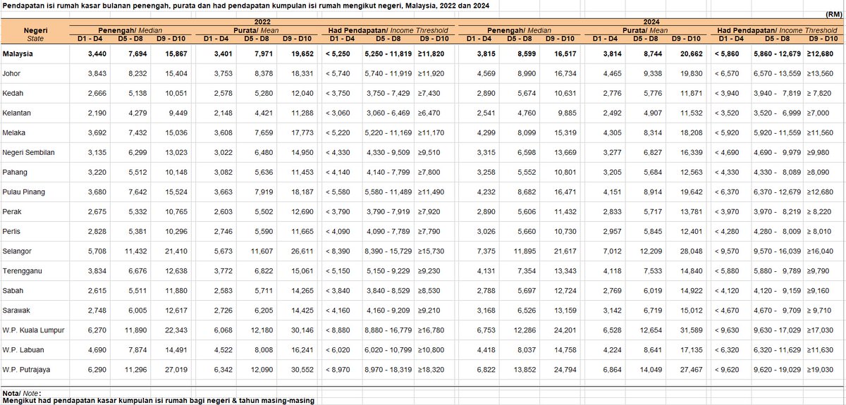 Setiap desil mewakili 10% daripada keseluruhan isi rumah, bermula dari kumpulan berpendapatan paling rendah (Desil 1) hingga paling tinggi (Desil 10).