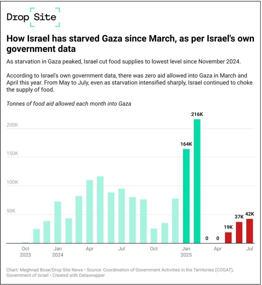 2/ Records from COGAT, Israel’s aid-monitoring agency, show that in March and April 2025 Israel let in zero food aid to Gaza. This came right as famine exploded.