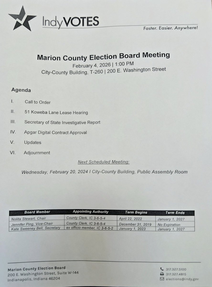 Hi everyone, I’ll be live-tweeting the Marion County Election Board Meeting at 1:00 p.m. for #IndyDocumenters. Media Partners: