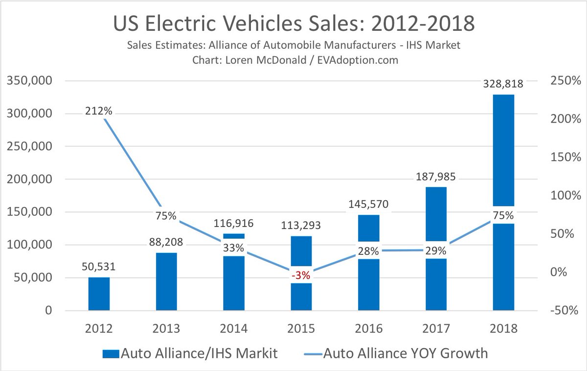 #ElectricVehicles@Tesla bit.ly/2TJ0Epg@Tesla 1) 2018 Was a Monster Year for EV Sales: Sales of EVs in 2018 were a record 328,818 units (using Auto Alliance numbers), a 74% increase over 2017.