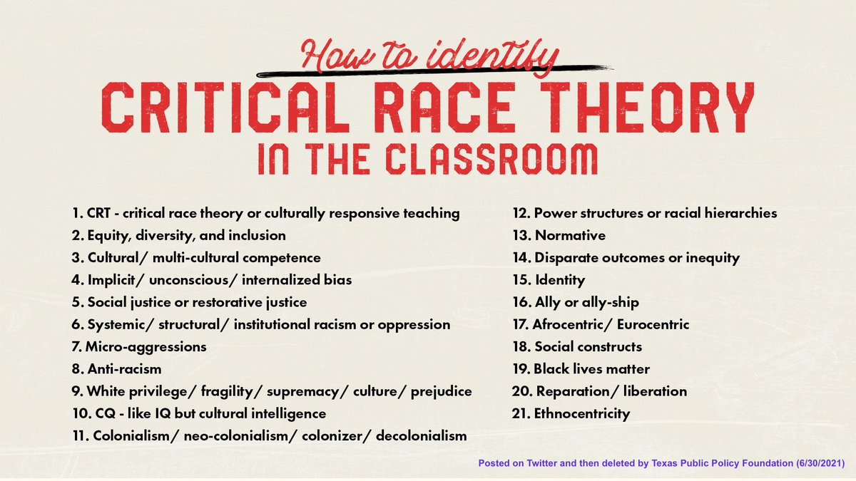 1) Earlier today the right-wing Texas Public Policy Foundation (@TPPF) posted and deleted this misinformed image about "critical race theory."