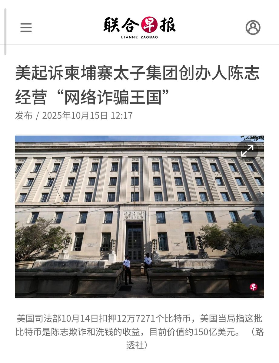 彭博社报道,根据星期二(10月14日)公布的起诉书,现年38岁的陈志(Chen Zhi,又名Vincent)指挥设立在柬埔寨各地的诈骗窝点,向美国以及世界各地的受害者进行加密货币投资诈骗,也就是所谓的“杀猪盘”。