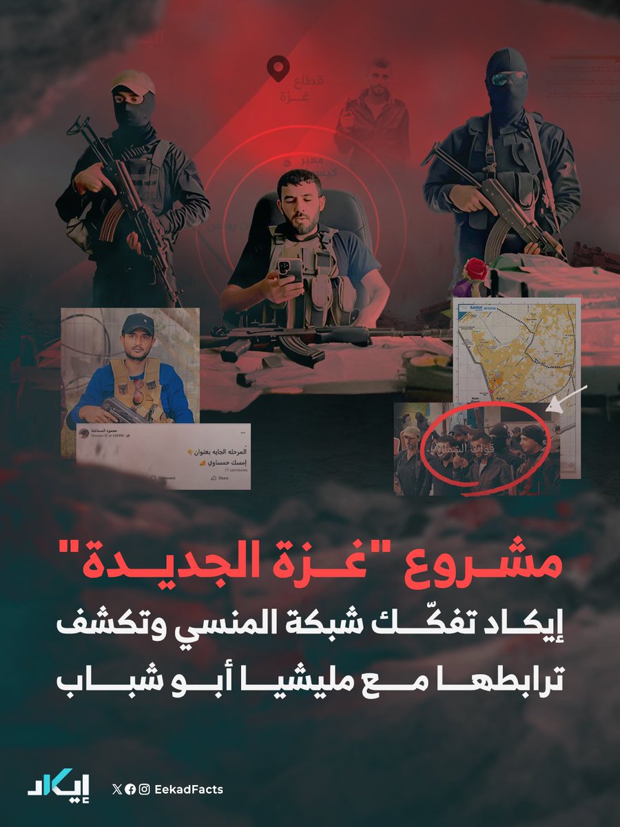 🔻كانت شرارة تحقيقنا صورة رصدناها مطلع أكتوبر الماضي -أي قبل انعقاد الهدنة بأيام- ظهر فيها غسان الدهيني -الرجل الثاني في ميليشيا أبو شباب- بجانب "أشرف المنسي" قائد ميليشيا"الجيش الشعبي" في شمال غزة، وكانوا حينها داخل مدرسة شمال القطاع، محاطين بعدد من العناصر المسلحة.
