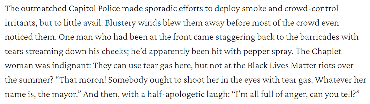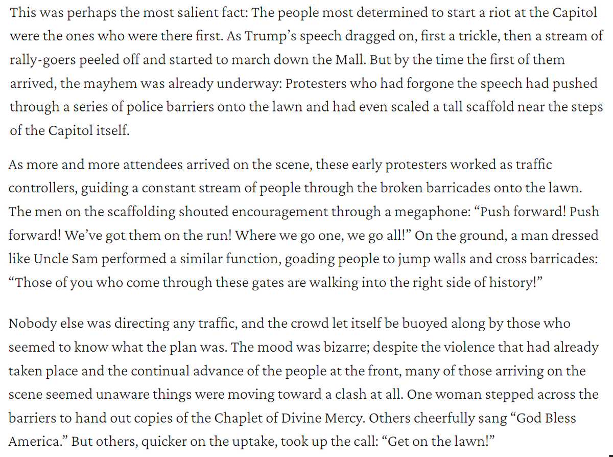 But the crucial fact of what happened January 6 is that *nobody backed off.* A bunch of actual insurrectionists kicked off the riot, but faced with a clash between "our people" and the Cap police there was zero question which side the rally crowd was going to get behind.