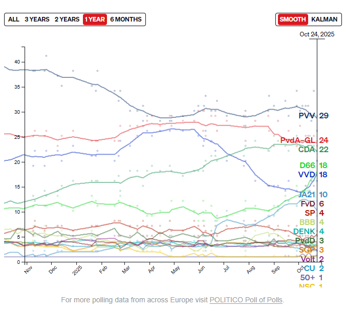 (1/8) Tercera elección en cinco años. El PVV de Wilders lidera las encuestas, seguido por Timmermans (izquierda verde-laborista) y Bontenbal (CDA). 🇳🇱