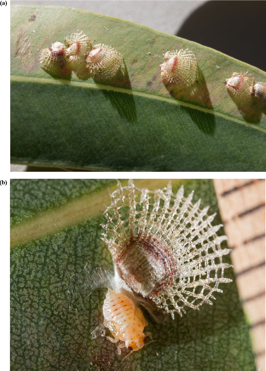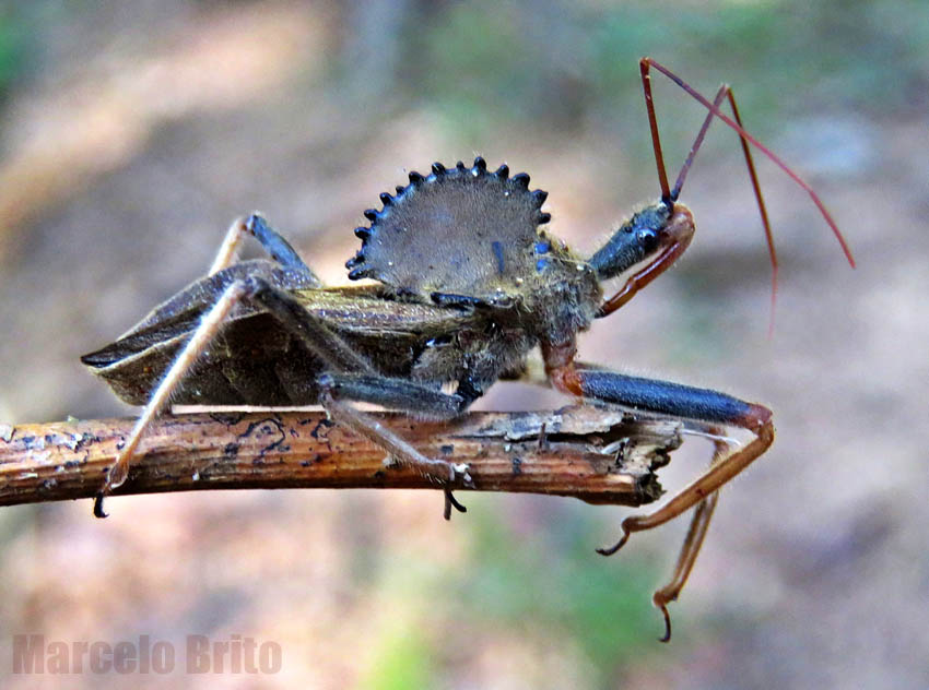 2 - Percevejo-de-crista. Este percevejo tem uma estrutura que lembra uma engrenagem. É um predador. Ele é praticamente inofensivo, a menos que realmente precise te morder como defesa, com uma espécie de agulha que ele tem como boca. Então, não tente segurá-lo!