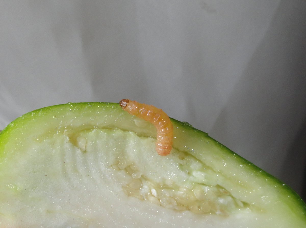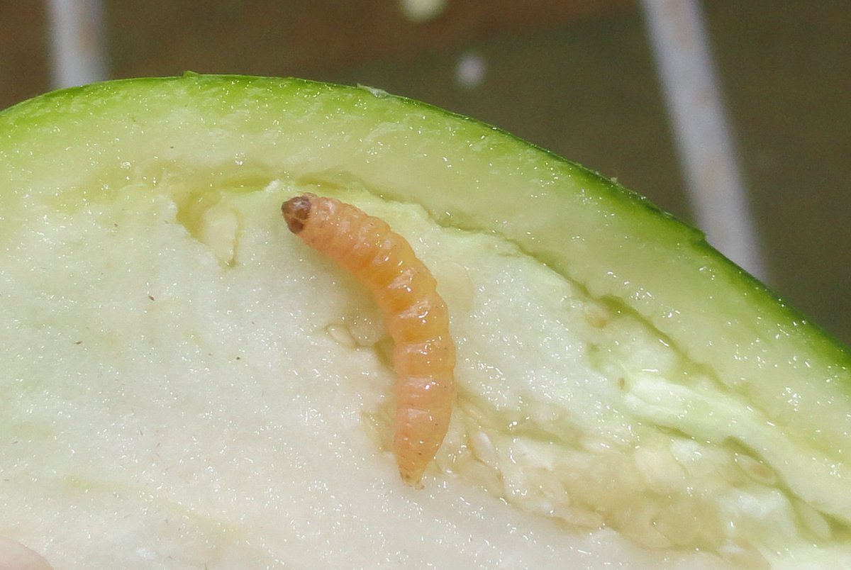 Ela viajou para um mercado dentro de seu jiló, que acabou sendo comprado por uma adoradora de insetos. Ontem foi um dia difícil, ela passou a noite na geladeira, mas agora está bem abrigada e está começando a tecer seu casulo no papel toalha.
