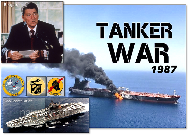 En 1987, l'Iran attaquait les tankers koweïtiens dans le Golfe. Reagan décide d'escorter. C'est l'opération Earnest Will — la plus grande opération de convoi naval depuis la 2e Guerre mondiale. Entre temps les Iraniens avaient posé des mines navales