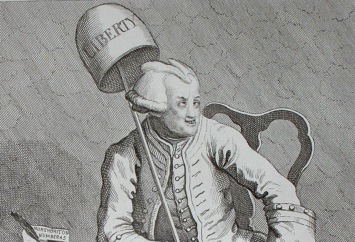In 1763 Wilkes published a satirical pamphlet called ‘The North Briton’. His attacks on the Government in that publication, particularly in the 45th edition, led to his arrest under a general warrant. In January 1764 Wilkes was expelled from the House of Commons. [2/4]