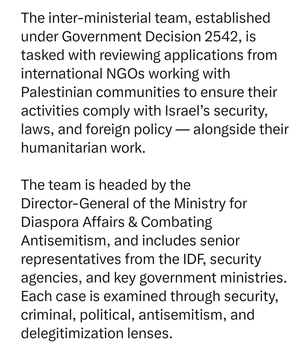 "Any attempt to condition humanitarian access on political alignment or penalise organisations for fulfilling their mandate risks breaching this framework. The International Court of Justice (@CIJ_ICJ ) ordered Israel to allow unimpeded delivery of humanitarian aid to Gaza in three legally binding provisional measures orders in 2024. Yet, these new rules expand and institutionalise existing barriers to aid."