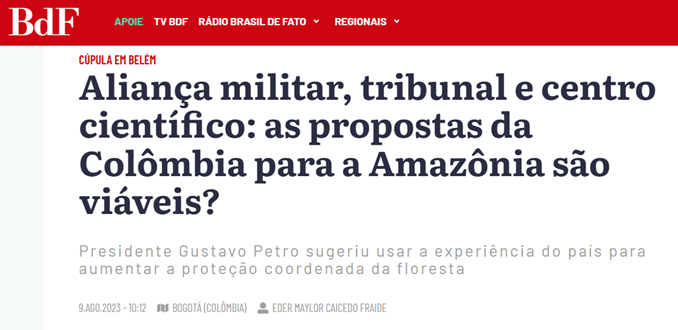 a criação de "OTAN da Floresta"⚠️ e Tribunal Ambiental⚠️, atua por iniciativas de troca de dívida externa por “Ação Climática” e a participação de ONGs e indígenas nas negociações sobre o território "panamazônico".