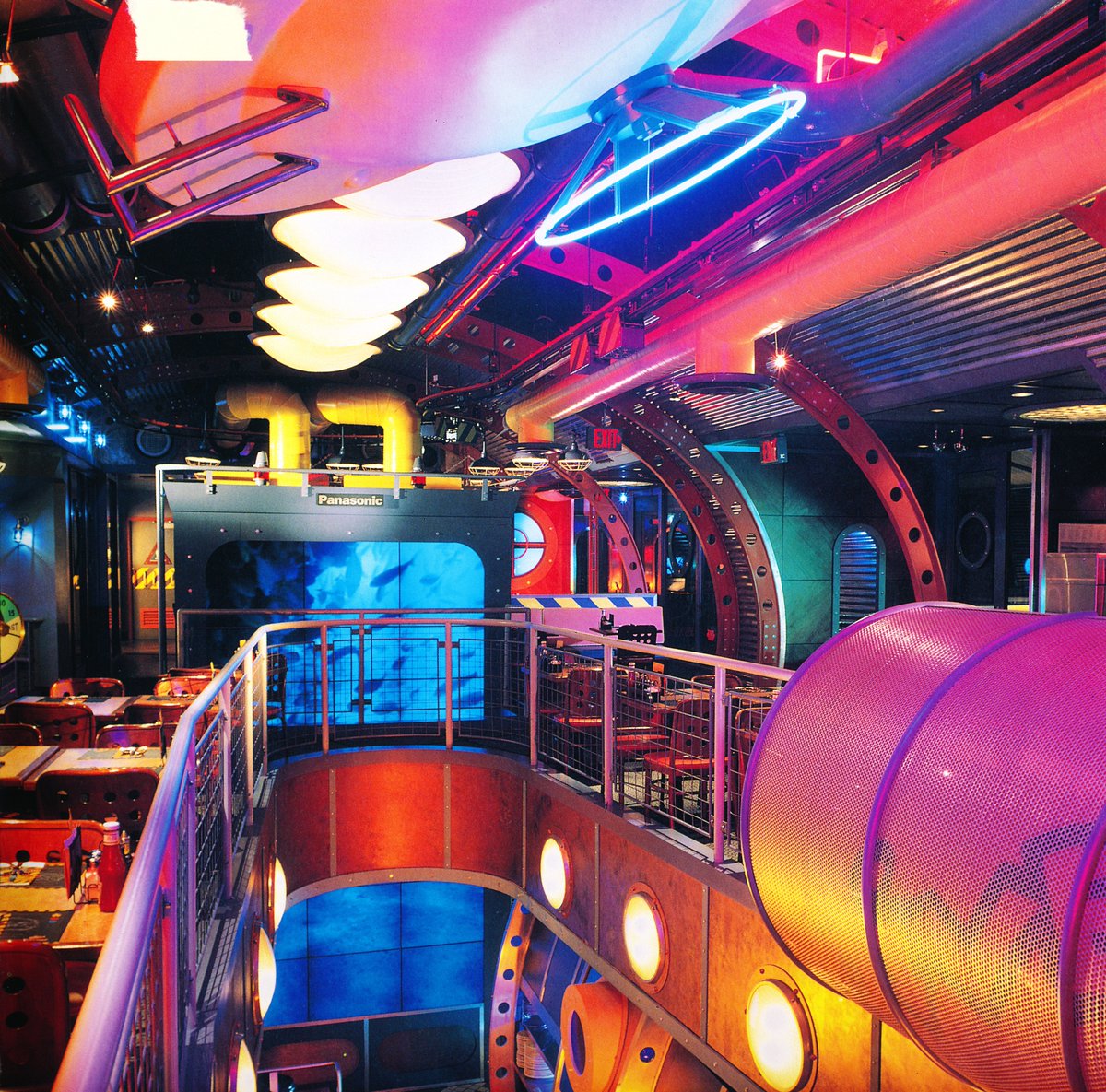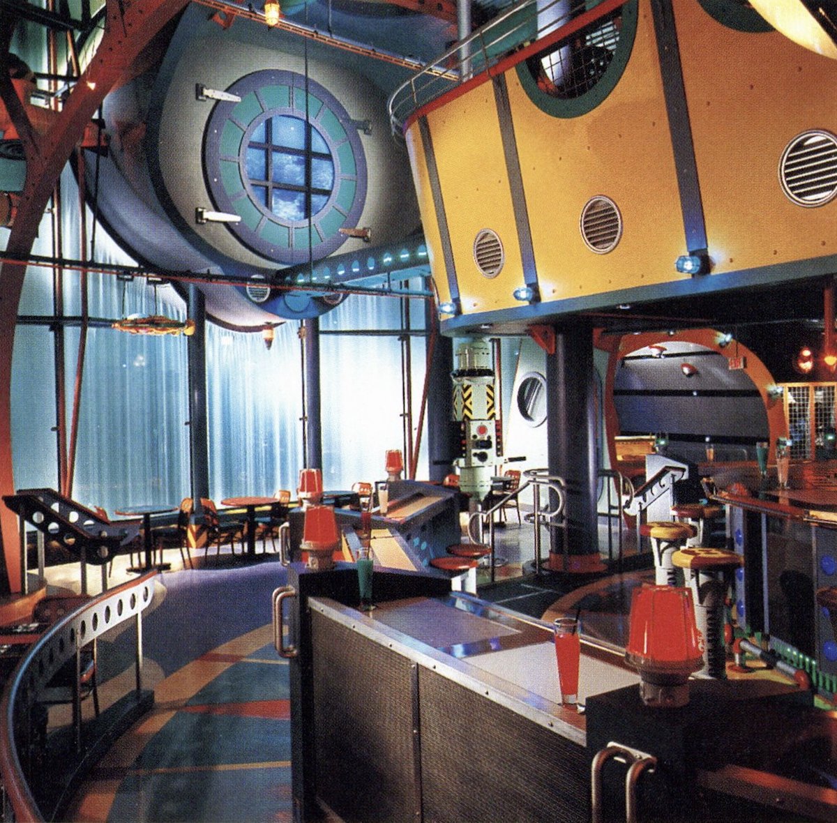 A fully-curated experience, upon entering through the 'hatch door' entry, guests are greeted by a uniform-clad 'sailor', guiding them to their seats; adjacent to either a porthole window with underwater aquarium or view of the massive multi-screen virtual 'sea window'. (2/X)