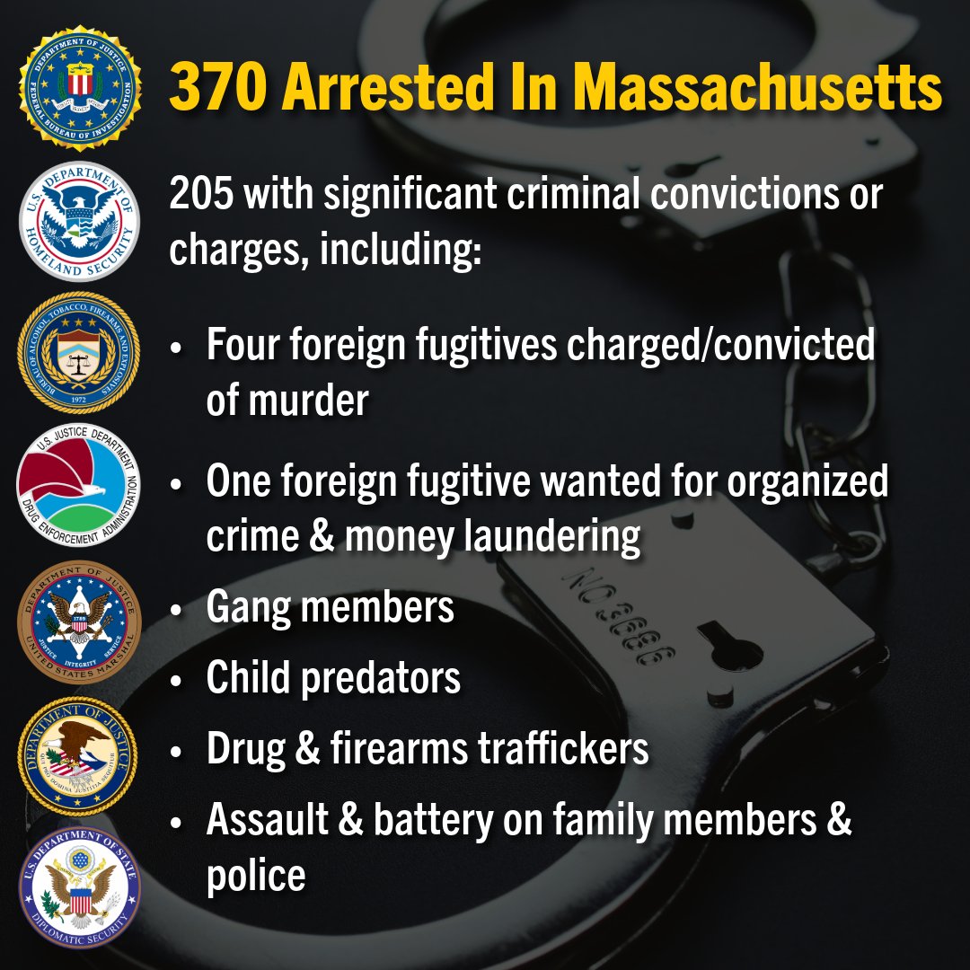 @ICEgov @EROBoston @ATFBoston @DEANEWENGLAND @HSINewEngland @USMS_ @StateDeptDSS #FBI Boston stood up a command post to provide a central hub for our @ICEgov @EROBoston & @TheJusticeDept partners to track arrests, deconflict targets & enhance information sharing as we surged resources to arrest the most dangerous alien offenders in Massachusetts.