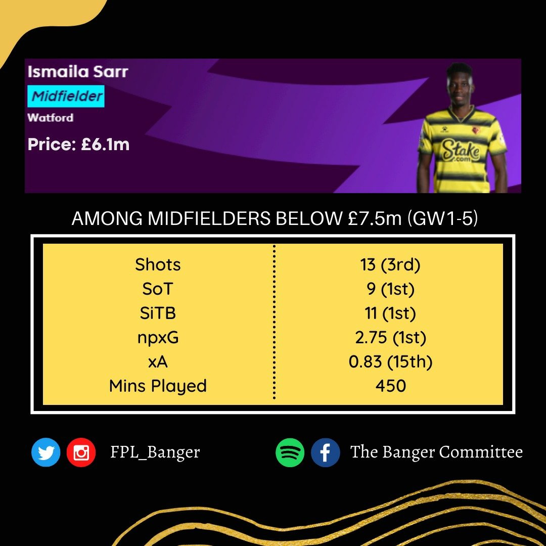 Chasing last week's points? Perhaps, but Sarr faces 2 of the 3 worst defences this season for expected goals conceded in Newcastle & Leeds next. He's also 100% nailed as the talisman of Watford