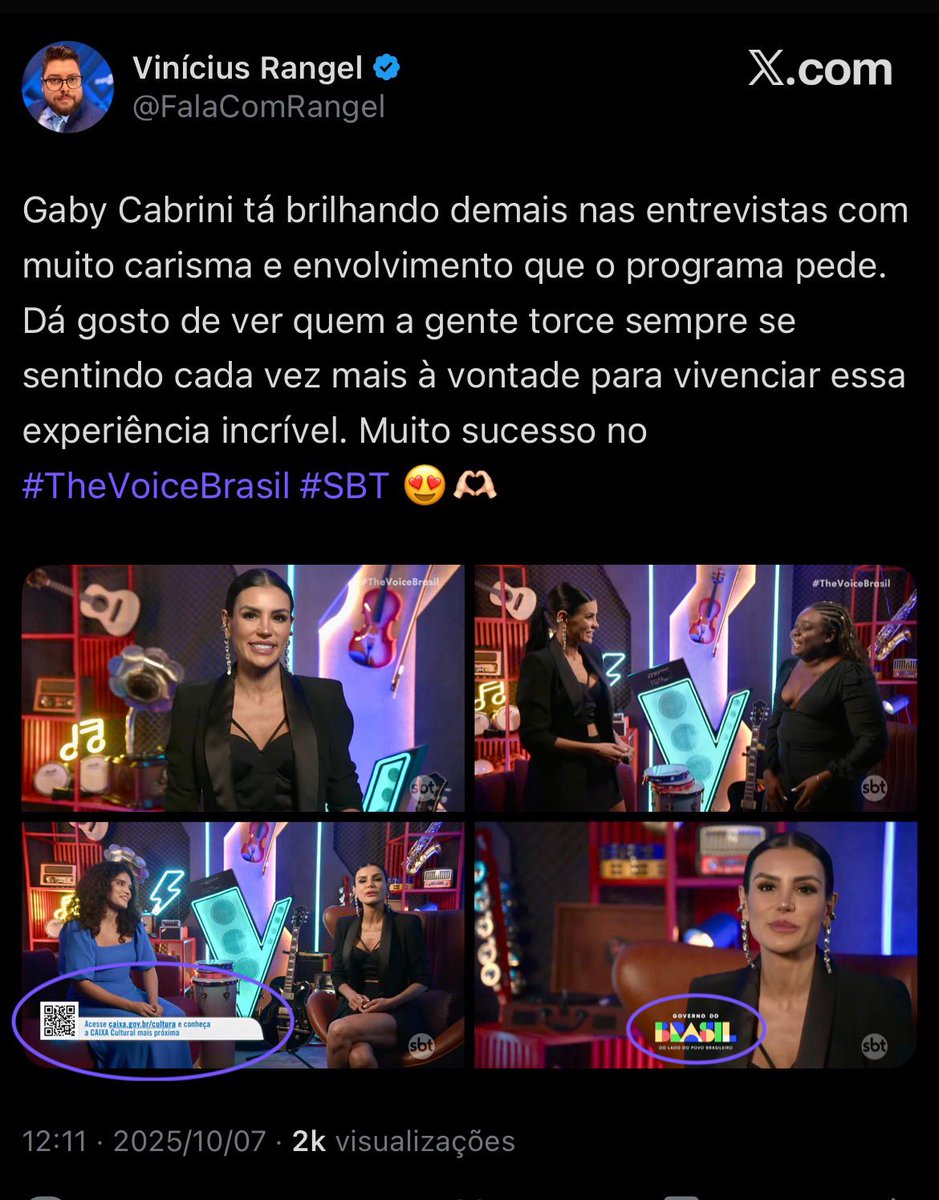 A nova temporada do The Voice Brasil no SBT começa forte com direito a merchan do governo federal. Essa situação mostra mais uma vez que o problema é mais profundo e o país segue dividido entre quem lucra com o poder, quem já desistiu de entender o jogo e quem tenta a renovação.