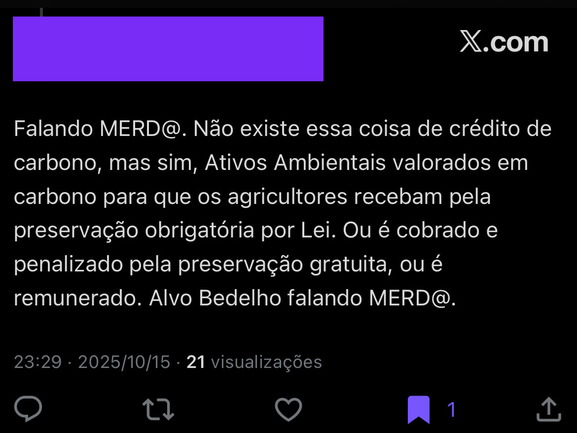 Quando alguém diz: “não existe crédito de carbono, mas sim ativos ambientais valorados em carbono”.