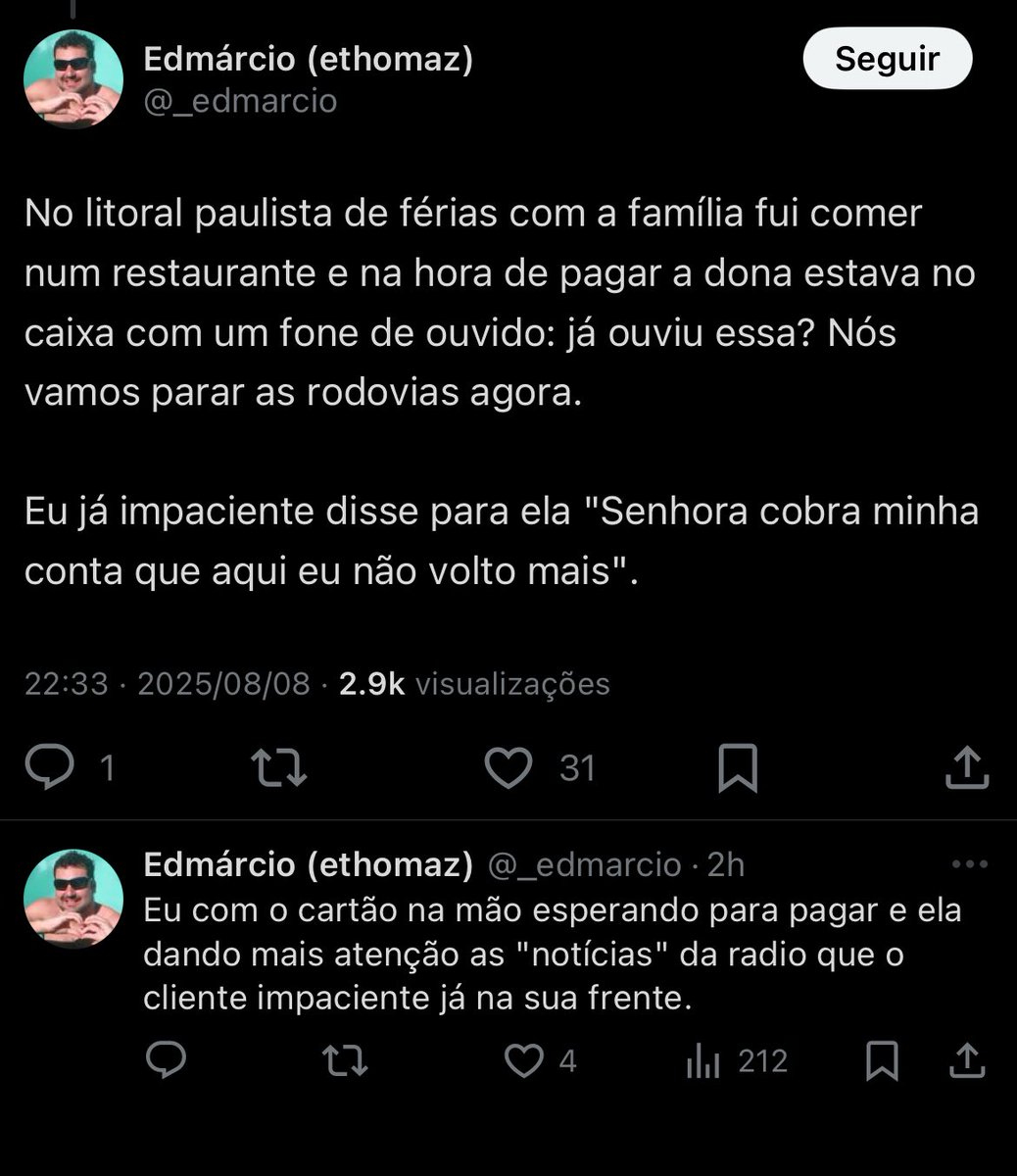 Mal interajo aqui no 𝕏, não marco parlamentares, não faço “postizinho” quando alguém considerado de renome me segue.
