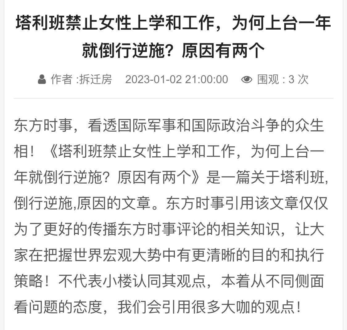 二、阿富汗国内抗议这事儿被外国媒体一宣传,说得阿富汗国内好像已经群情激愤民怨沸腾了,但我们在后续中却没有看到塔利班政府镇压或者为这事儿又抹了谁的脖子之类的消息。