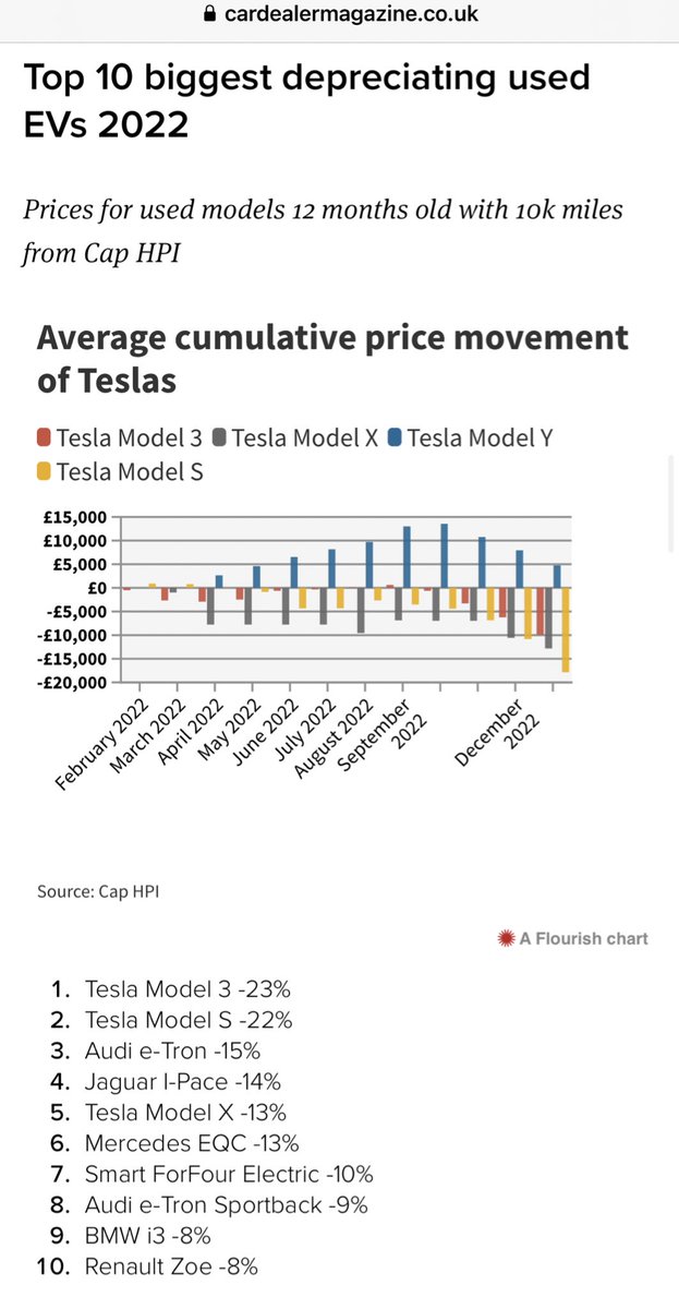 Just one year ago, Tesla Model 3 was praised for having some of the best resale values. What a difference a year makes. https://twitter.com/factschaser/status/1612594626413883393