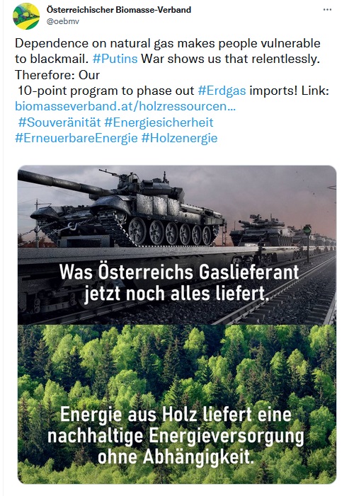 First, an example from the Austrian biomass lobby. Shameless opportunism at its best.