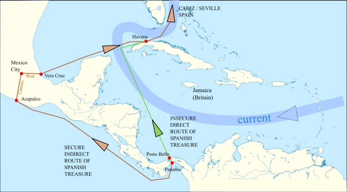 El problema era claro: el Caribe y el golfo de Méjico eran un punto bastante vulnerable del sistema. Porque por ahí circulaban las riquezas que conectaban América con España. Y por ahí, a pesar de su baja eficacia, atacaban piratas, corsarios y las múltiples potencias enemigas.