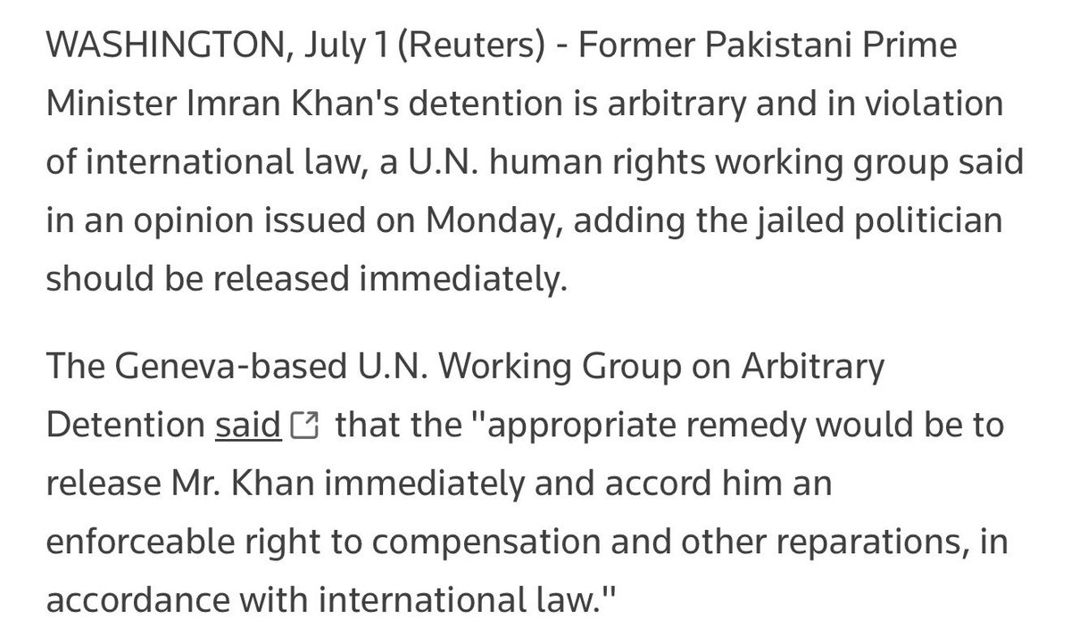 2/16 Pakistan’s internal drama eventually sat right inside this regional script. Imran Khan was removed from office in April 2022 and, over the months that followed, pushed from political leader into criminal defendant and finally into prisoner. His trials were dressed in legal language, but his detention is illegal in the eyes of international law: in mid‑2024, the UN Working Group on Arbitrary Detention formally declared that his imprisonment is arbitrary, violates Pakistan’s obligations and that he should be released immediately with a right to compensation.