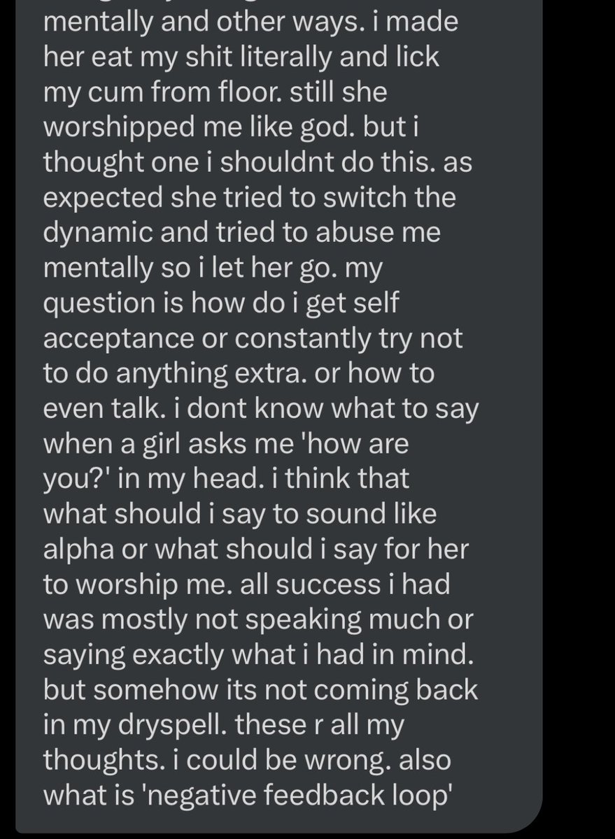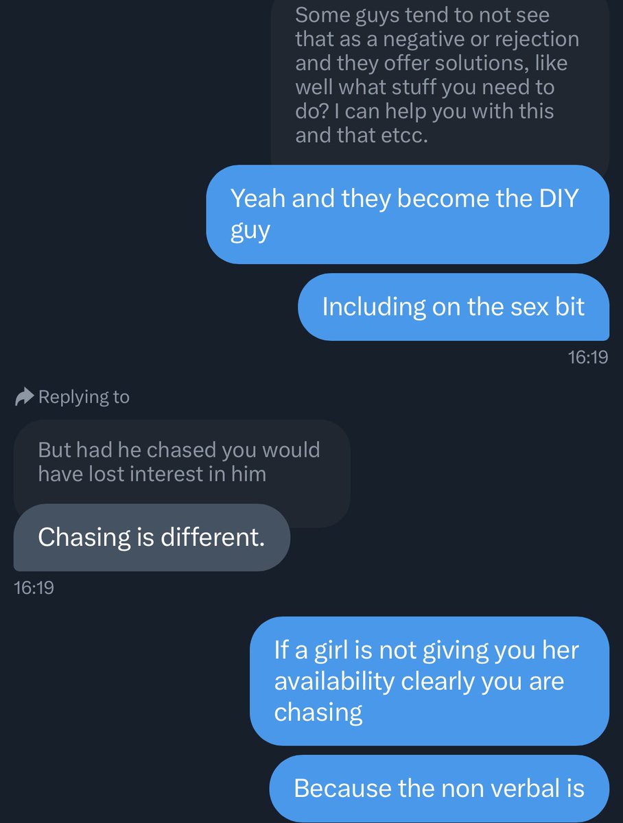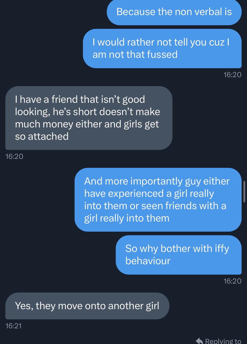 Part 2 => she explains it is how women getting attached to men (partly true - depending on the methodology) => love bombing => when a guy has time to spare, energy and attention to give and know how to push the right triggers you can investment dump on her - provided she is receptive you have a perfect specimen for an available lonely heart looking for a host. But he seeks to rent and she is looking to sell=> the outcome is not a direct cause to what she attributes it to.