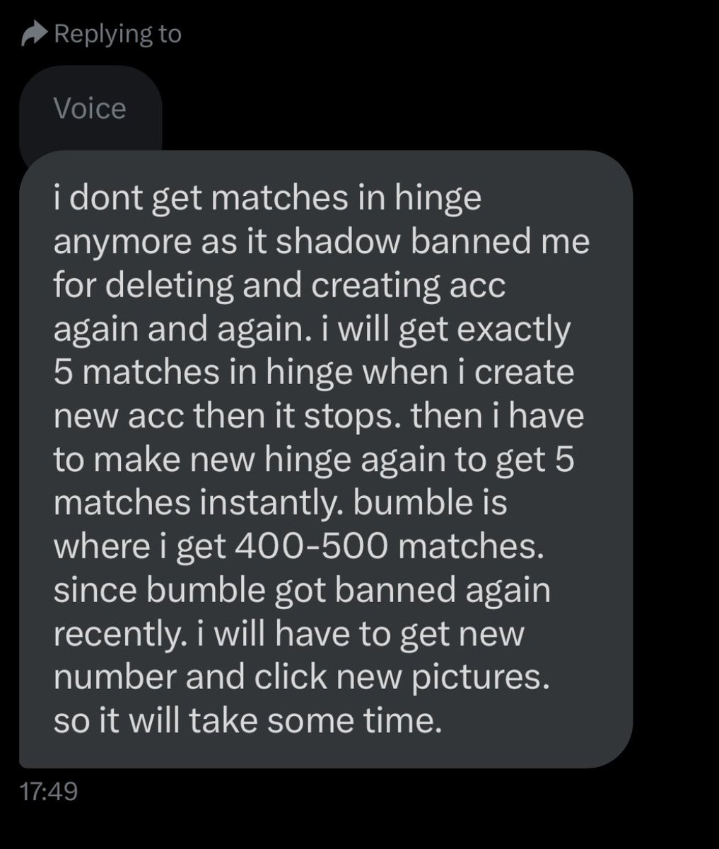 10) There is a higher likeliness to be targeted by dating apps if you are active and successful on them because women are petty and will make you pay by reporting you when you next them, much more so than if you troll them (I am still active on Bumble lol).