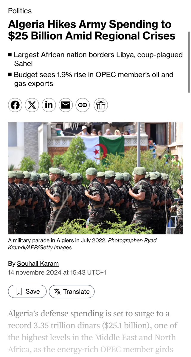 In 2025, Algeria will spend $25 billion on defense nearly 20% of its national budget (this is HUGEEE for a country not at war) and close to 10% of its GDP. This is one of the highest defense-to-GDP ratios in the world.