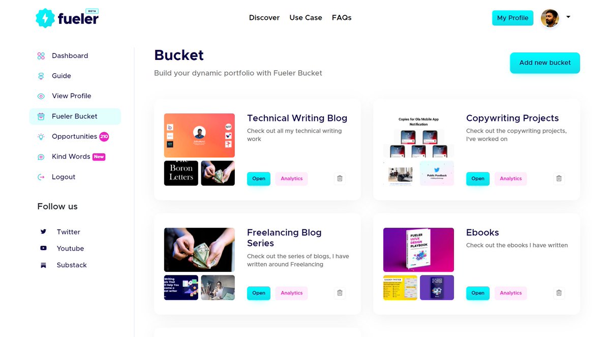 Fueler Bucket is one of the features of Fueler, you get to access it when you land on your Fueler dashboard.