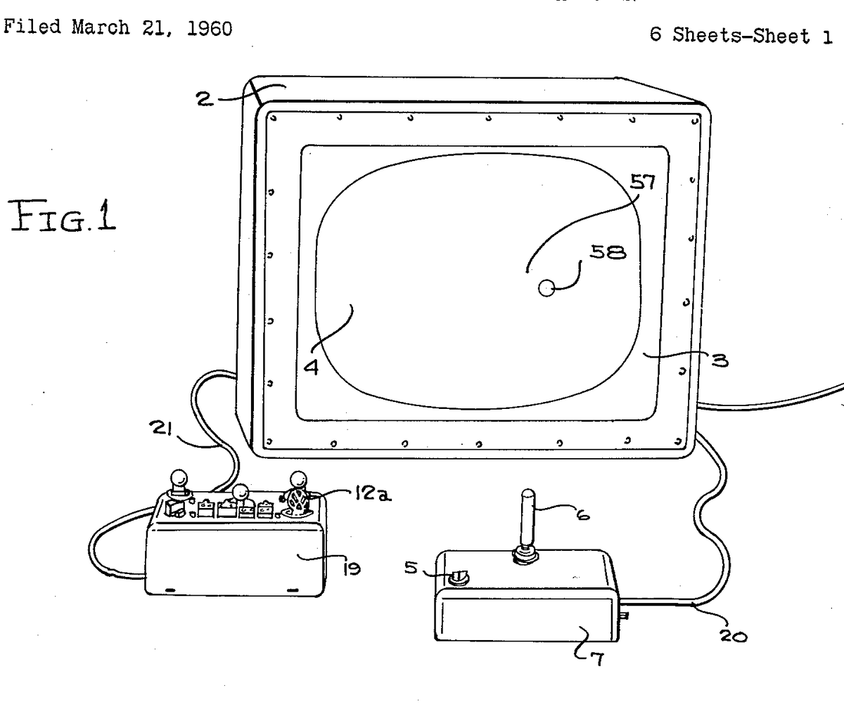 Here are the relevant links, but basically these patents describe what could well be considered a video game, at least 6 years before it was a glimmer in Ralph Baer's eye.