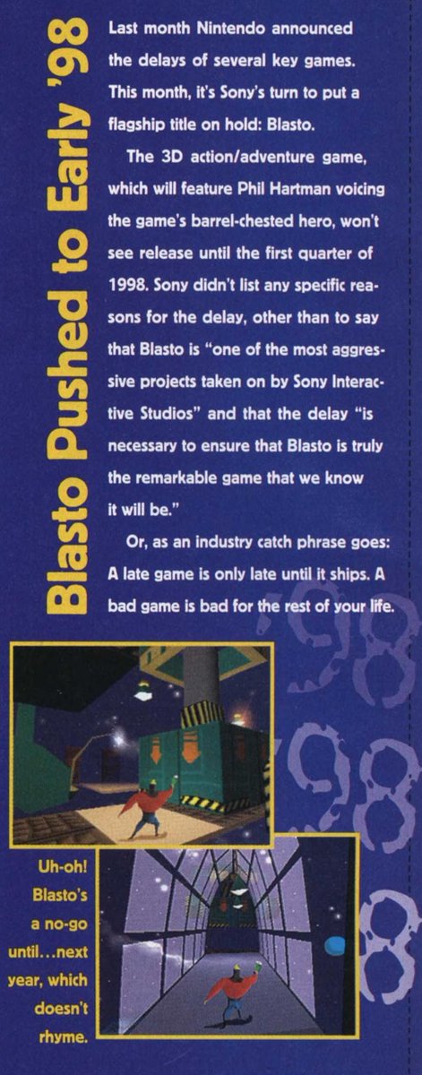 https://twitter.com/JavedLSterritt/status/15046473036336701491997-11 Gamepro pg 28, in reference to Blasto. Says it's "an industry catch phrase".