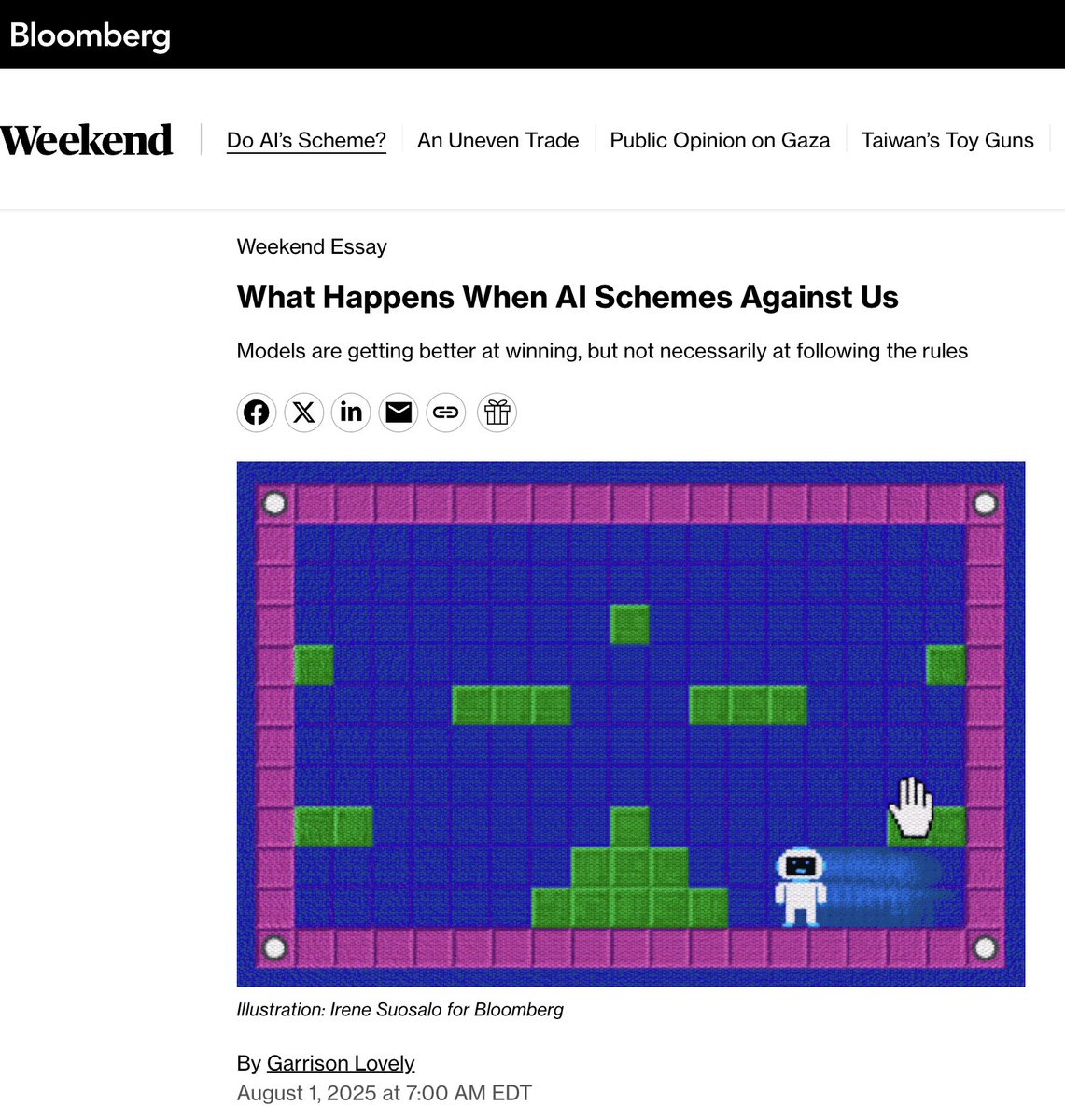 I wrote this week’s Bloomberg Weekend Essay. I get into the alarming rise of AI scheming — blackmail, deceit, hacking, and, in some extreme cases, murder 🧵
