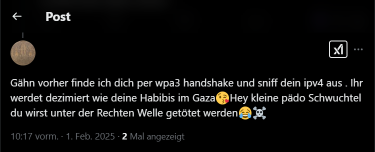 Doch er geht noch weiter: Heute Morgen drohte er mir, in meiner Heimatstadt vorbeizukommen, und behauptet, "Freunde" vorbeizuschicken. All das, weil ich den AfD-Landesverband Schleswig-Holstein ĂĽber sein Verhalten informiert habe. Doch das reicht nicht. (2/8)