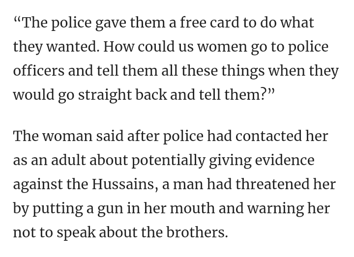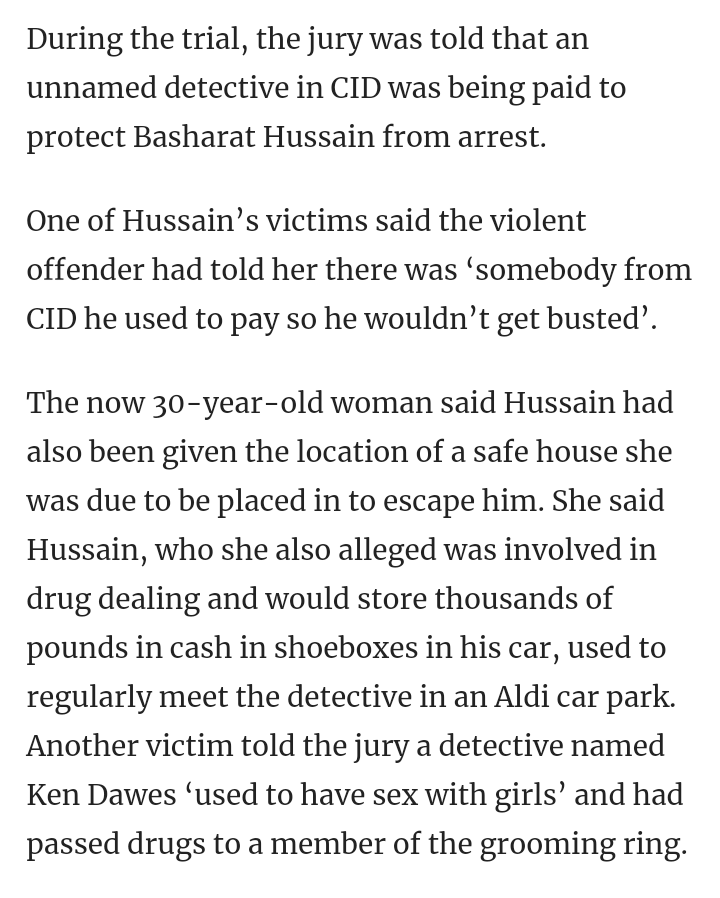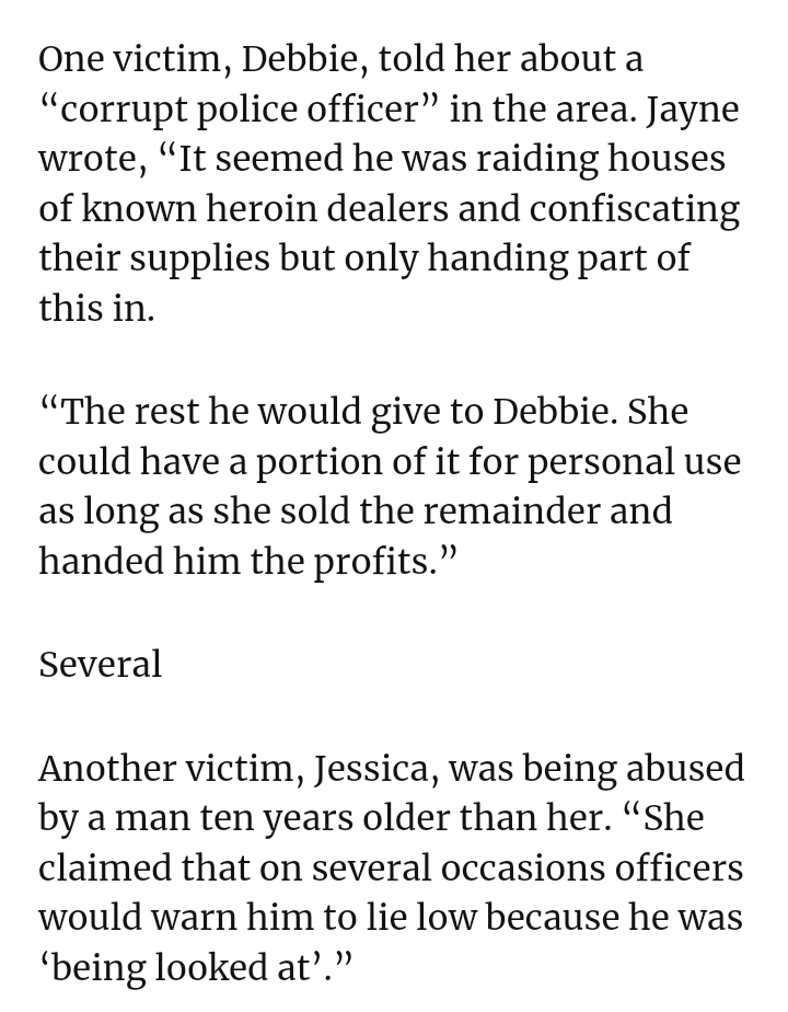 A core group of officers worked for/with the network: gave them info & partnered on drug deals. The surrounding institution of South Yorkshire Police found it easier to ignore/cover up what their officers/friends were doing than to protect the girls.