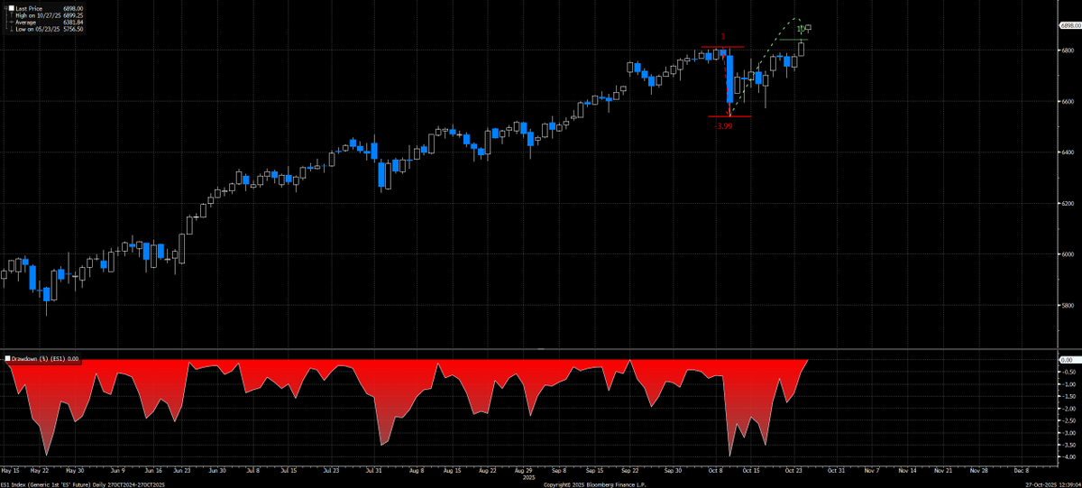 The main divergence we are seeing taking place right now is Mag7 (blue) has been pulling the index HIGHER as the broad market breadth is falling