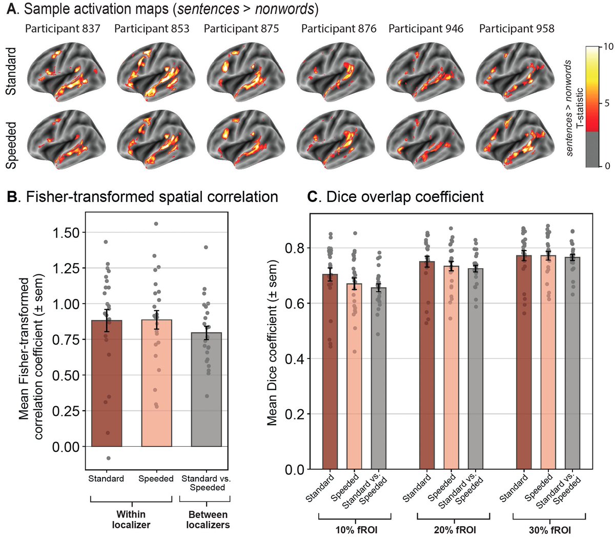 Code: biorxiv.org/content/10.110… rb.gy/x2rjzj2/ We present a speeded version of a widely used localizer (Fedorenko 2010) for the language network. In brief, the lang. network is a set of interconnected regions in the frontal and temporal lobes, selective for lang. over various non-lang. tasks (see ).rb.gy/g9pnkn