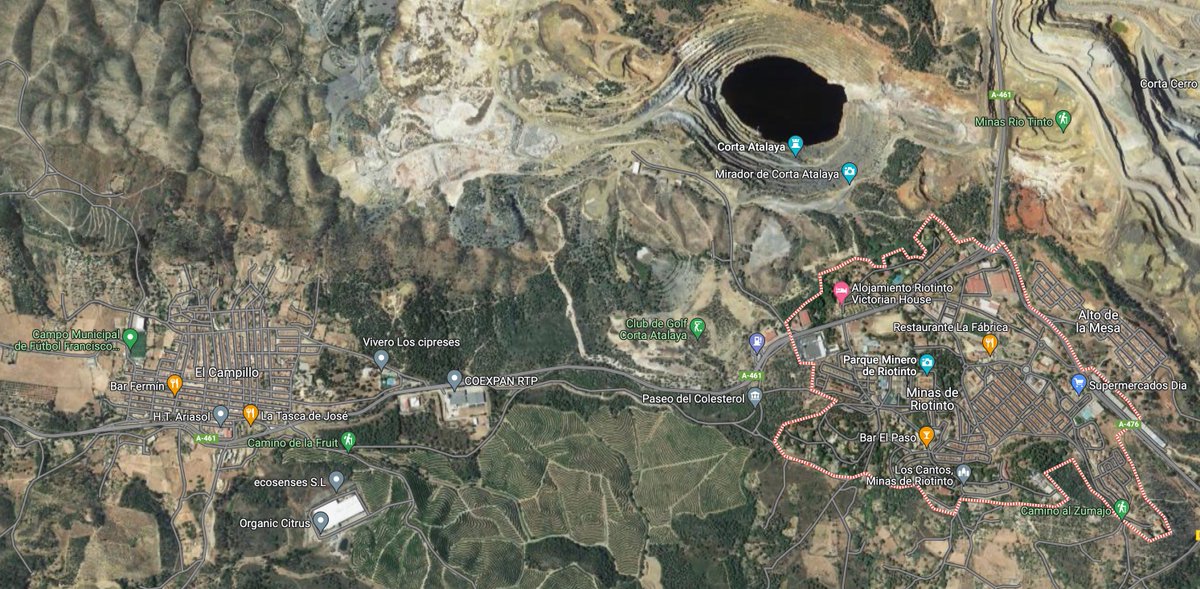 A 3 km de El Campillo se encuentra Minas de Riotinto, municipio que ha estado ligado a la actividad minera ya incluso desde época romana. Si tenéis la oportunidad, un viaje en el tren turístico que recorre el trazado histórico del ferrocarril de Riotinto es visita obligada.