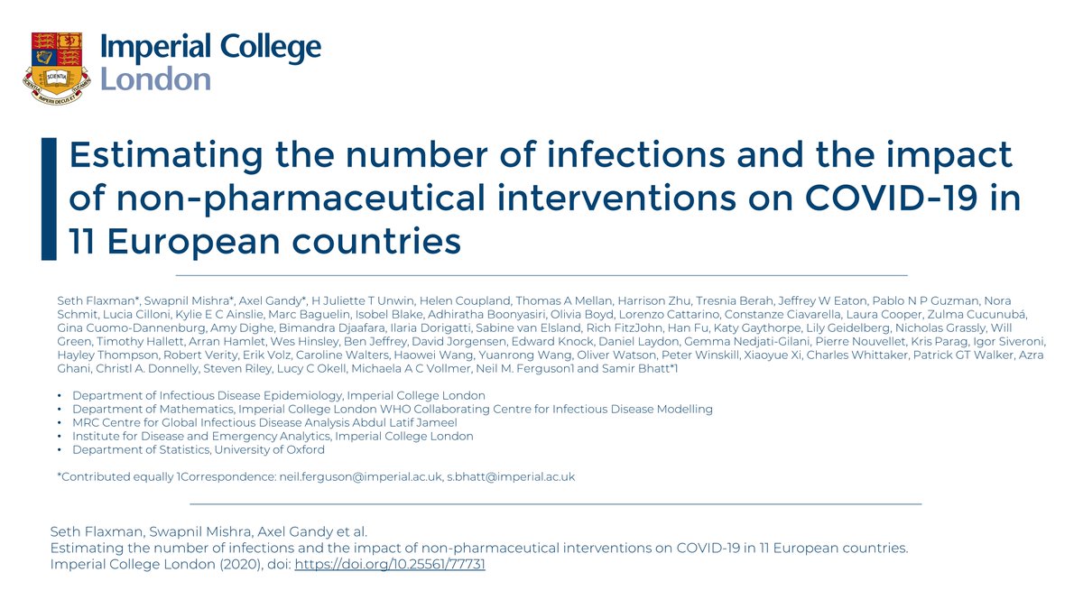 El trabajo analiza 11 países europeos azotados por el #COVID19 con el doble objetivo de establecer a partir del número de muertos, la cantidad real de infectados y la eficacia de 5 medidas de control de la infección. Aquí os dejo el enlace al trabajo spiral.imperial.ac.uk:8443/bitstream/1004…
