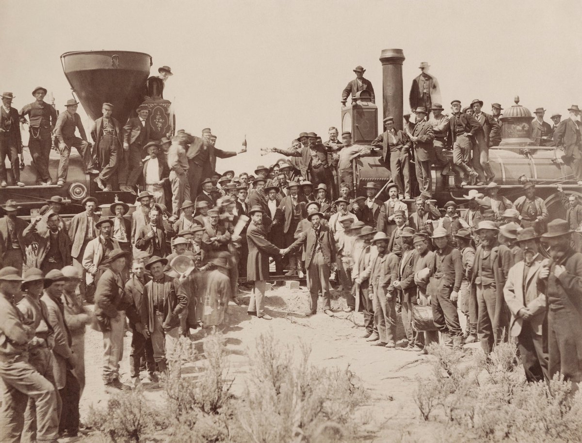 https://twitter.com/librarycongress/status/16562683148789186562⃣ El martillo (Golden Spike) y el clavo fueron unidos por un cable a la línea de telégrafo de modo que cada golpe fuera oído como un chasquido en las estaciones de telégrafo a escala nacional; así, puede decirse que fue el primer acontecimiento "retransmitido" en directo.