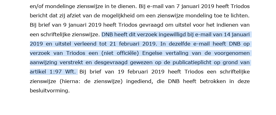 En la parte inferior de esta imagen ves la línea de tiempo. DNB dio una instrucción en 2019, y no fue hasta 2024 que el resto del mundo pudo saberlo. Pero incluso entonces, Triodos no contó honestamente todo lo que realmente contenía.